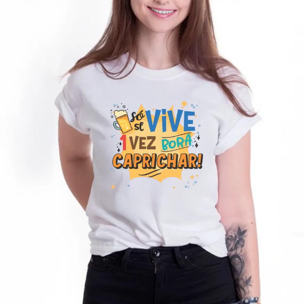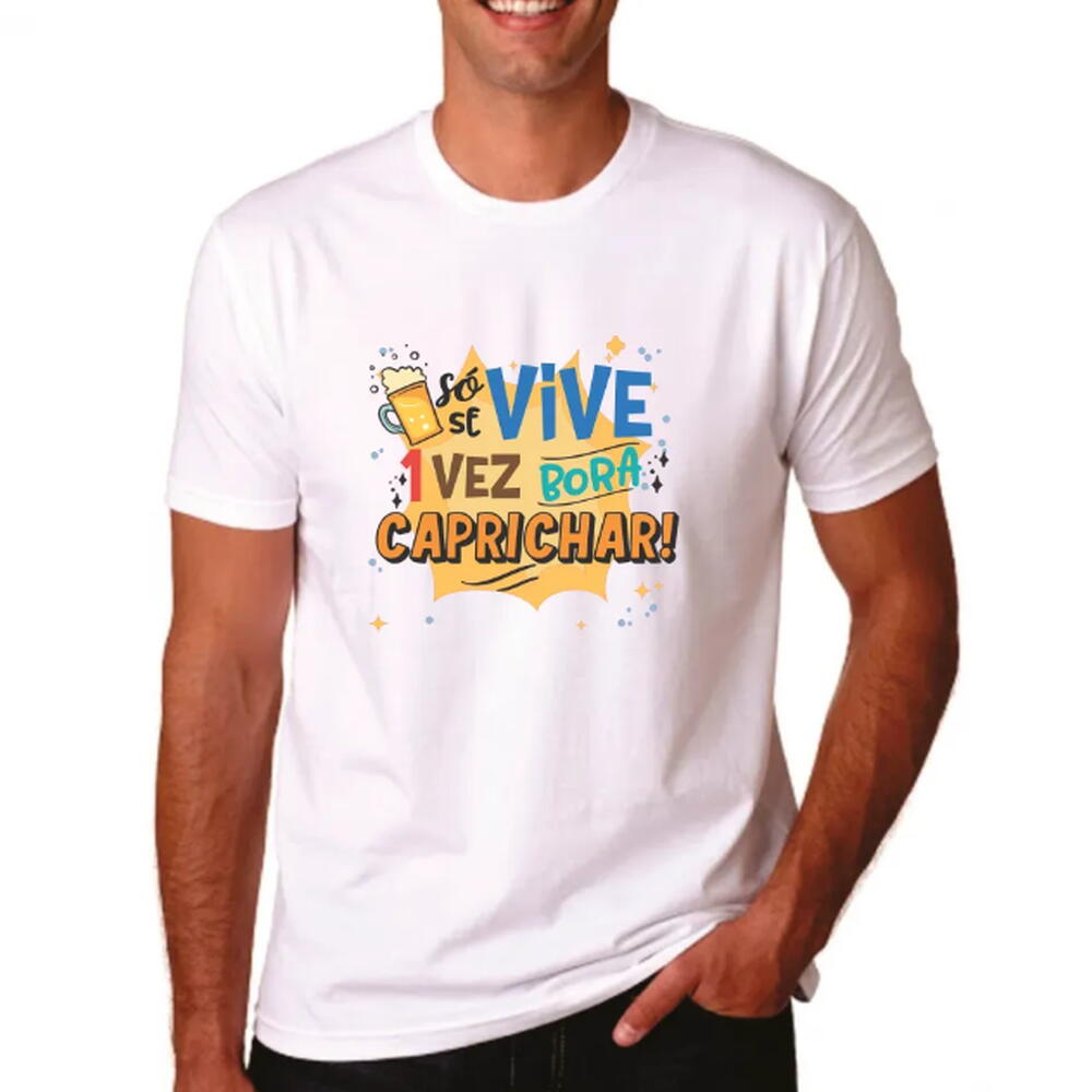 Camiseta "So se vive uma vez, bora caprichar" – A escolha perfeita para o Carnaval (malha poliester encorpada)