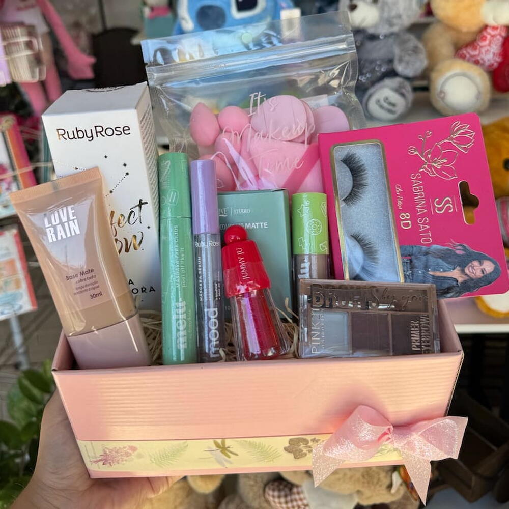 Esta impressionante caixinha de beleza é composta por um mix diversificado de produtos de alta qualidade que vão elevar o seu jogo de maquilhagem a um novo patamar. Comece com a Base Líquida Matte Alta Cobertura à prova dágua Love Rain, seguida pelo Pó Compacto Max Love Matte à prova Dágua para um acabamento perfeito e duradouro. Realce seus olhos com a Máscara de Cílios Melu by Ruby Rose e a Paleta de Sombra para Sobrancelhas Brows By You Pink 2. Ilumine seu rosto com a Bruma Fixadora Perfect Glow da Ruby Rose e realce seus lábios com o Lip Gloss Jummy Ju. O kit também inclui um Serum para Cílios e Sobrancelhas Mood, uma esponja para aplicação precisa e um par de cílios postiços 8D para um drama extra. Este kit de beleza versátil é tudo o que você precisa para uma transformação total!