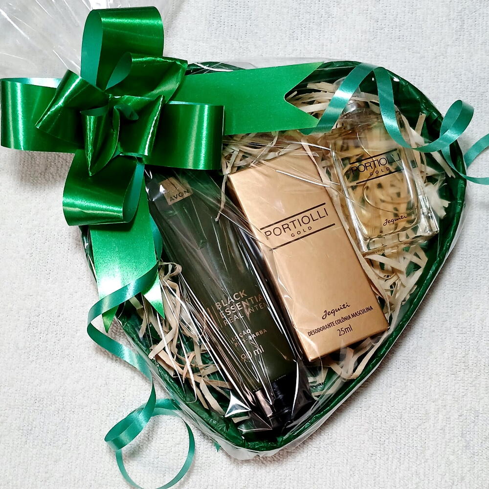 Esse kit oferece elegância e personalidade! Deixe sua marca por onde passar. Contém: *Pós-barba Black Essential - Avon 90ml *Colônia Celso Portiolli - Jequiti 25ml. Embalado com celofane transparente e laço.