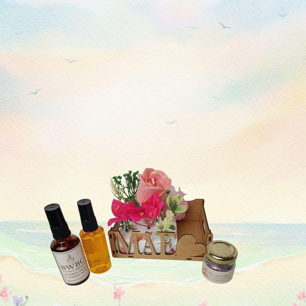 Transforme o dia dela em um verdadeiro spa particular. Este kit exclusivo foi curado para mães que irradiam luz e merecem um momento de pausa absoluta. A experiência começa com a delicadeza da Vela em formato de Botão de Rosa, que ilumina e decora com elegância. Para o cuidado pessoal, a força do Buriti se faz presente no Perfume para Cabelos (deixando os fios perfumados e brilhantes) e no Óleo Trifásico Seco, que hidrata sem pesar. O ápice do relaxamento fica por conta do Escalda-pés Premium: uma alquimia de Camomila, Hibisco e Palo Santo, perfumada com óleos essenciais de Lavanda e Rosas. Um presente que toca a alma.
