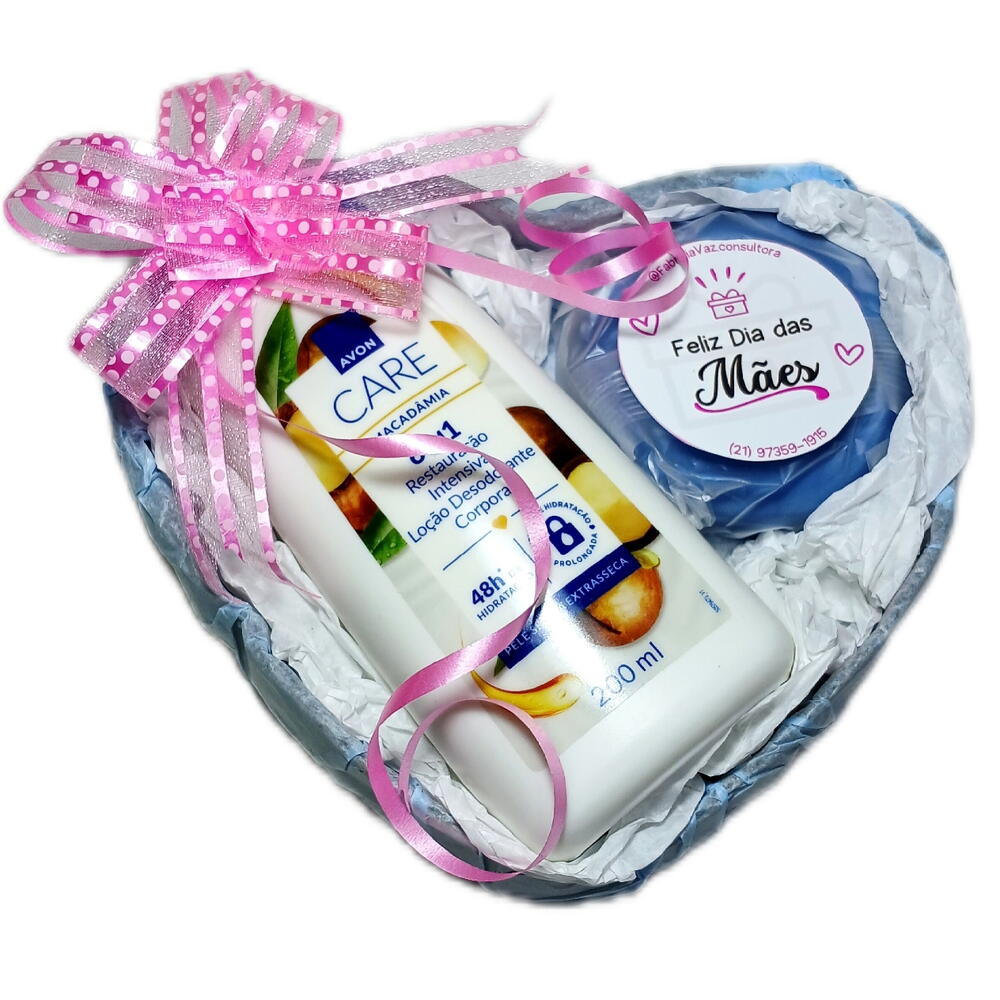 Tem presente que a gente olha e já sente o amor, né? Esse kit foi montado para proporcionar um momento de puro mimo. Hidratação aveludada + perfume irresistível= Você é especial! Contém: *Hidratante Corporal Macadâmia Avon 200ml *Sabonete Encanto Avon 80g - Avon. Embalado com celofane transparente e laço. Peça agora!