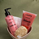 Ritual de Cuidado com Melancia — Pele Macia, Mente Leve Existe algo especial em reservar alguns minutos só para você. Este kit foi pensado para transformar o banho em um pequeno ritual de autocuidado. A combinação do hidratante melancia Labotrat com o esfoliante corporal e facial Laborene cria uma experiência refrescante, delicada e envolvente. A textura suave, o aroma levemente adocicado e a sensação de pele renovada fazem você sentir que está vivendo um momento de spa — dentro da sua própria casa. 💗 O que você sente: • Pele macia ao toque • Frescor imediato • Leveza • Sensação de cuidado real A bucha vegetal potencializa a renovação da pele, preparando-a para receber a hidratação e deixando aquele toque sedoso que dá vontade de sentir o tempo todo. É mais do que um kit. É um convite para desacelerar. É um presente para você. Ou para alguém que merece carinho. 🍃 Ideal para quem ama se cuidar e transformar rotina em ritual.
