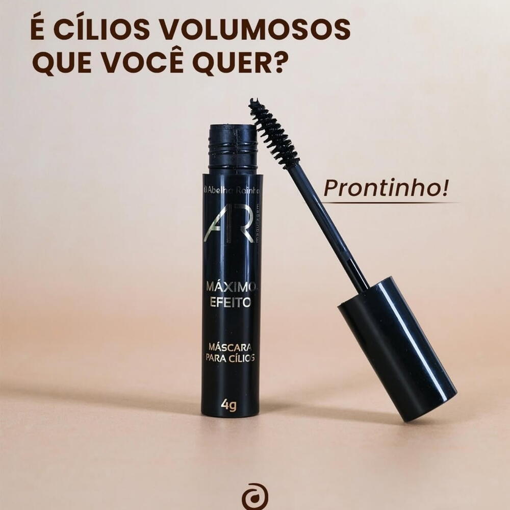 ✨ **Máscara de Cílios MÁXIMO EFEITO AR** ✨ Transforme seu olhar com a nossa máscara que proporciona **alongamento e volume** incríveis! • _Hidrata os cílios_ para um efeito saudável • _Efeito no panda_? Nunca mais! • Ideal para quem busca um olhar marcante e curvado 👉 Perfeita para o dia a dia ou para aquele evento especial! Experimente e sinta a diferença! 💖 🛒 **Garanta já a sua e arrase!**