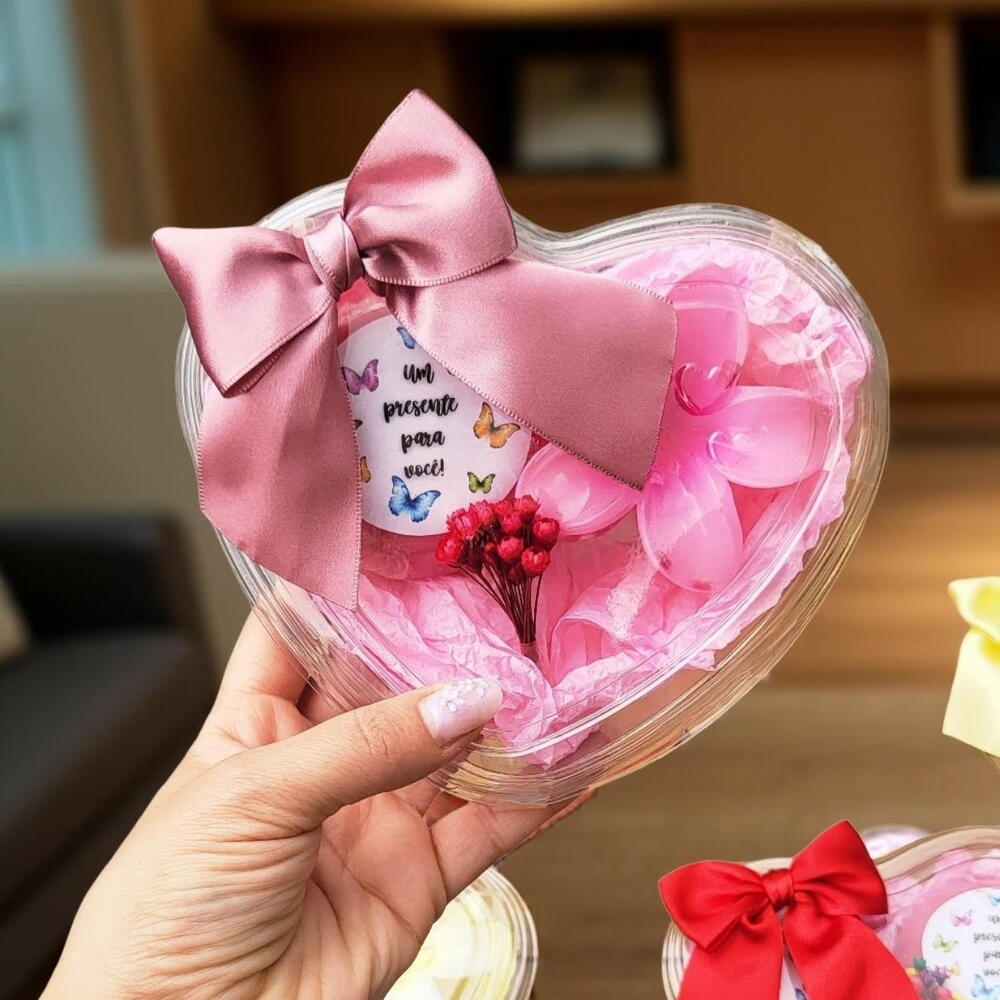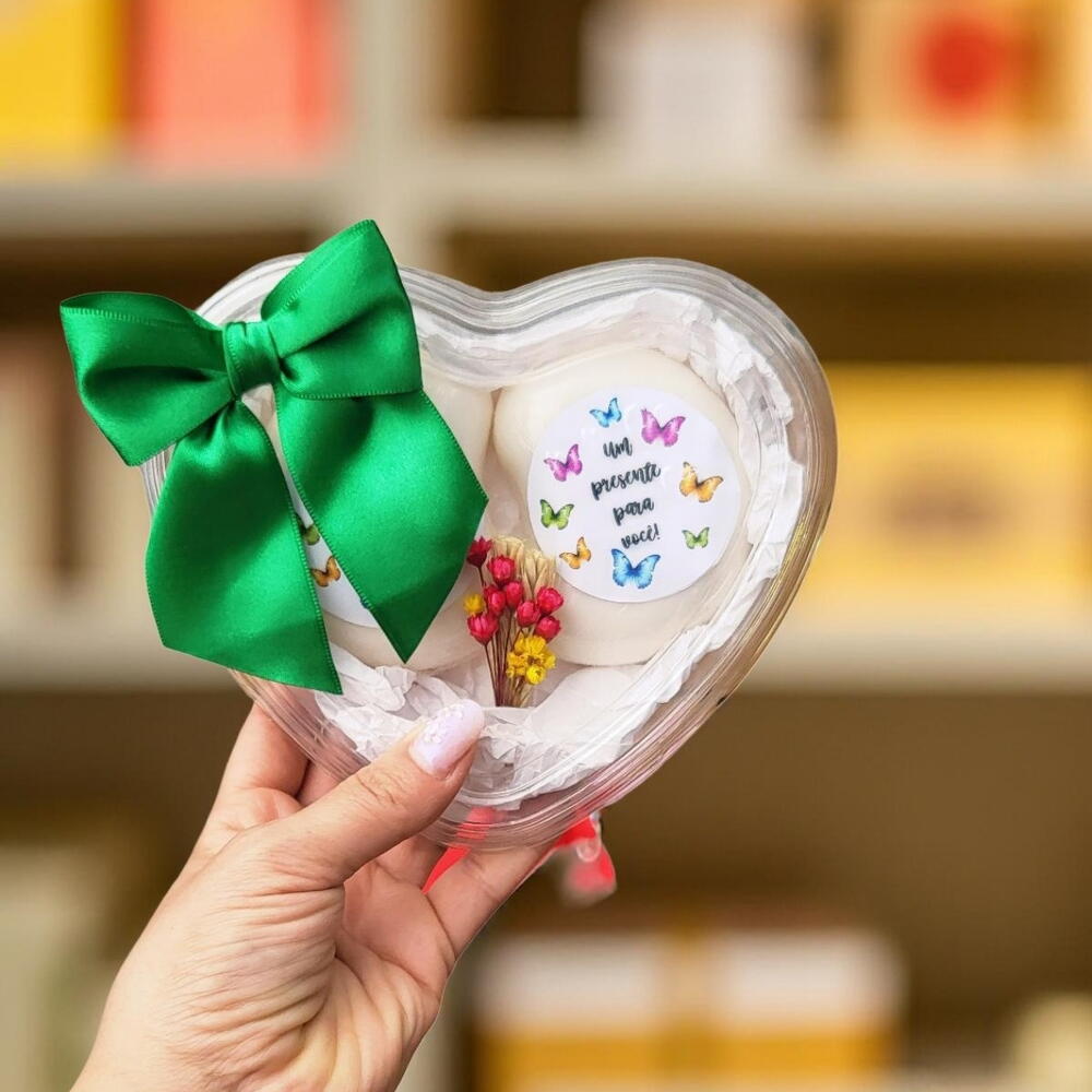 ✨ **Mimos Encantadores: Presentes que Transmitem Amor** ✨ Descubra a magia dos nossos mimos, cuidadosamente elaborados para tocar o coração de quem você ama! Cada detalhe é pensado para criar momentos inesquecíveis. 🌸 **Caixas em Formato de Coração:** Decoradas com laços de fita de cetim, nossas caixas são verdadeiras obras de arte que guardam surpresas especiais. 🧴 **Sabonetes Hidratantes:** Mimos que cuidam da pele, trazendo suavidade e fragrâncias delicadas, perfeitos para um momento de autocuidado. 💐 **Picanha de Cabelo em Formato de Flor:** Um toque único e divertido que transforma a rotina em um momento especial. 🎁 **Promoções Imperdíveis:** Não perca a chance de surpreender com presentes que falam de carinho e afeto! Transforme simples momentos em memórias eternas. Escolha os nossos mimos e espalhe amor!