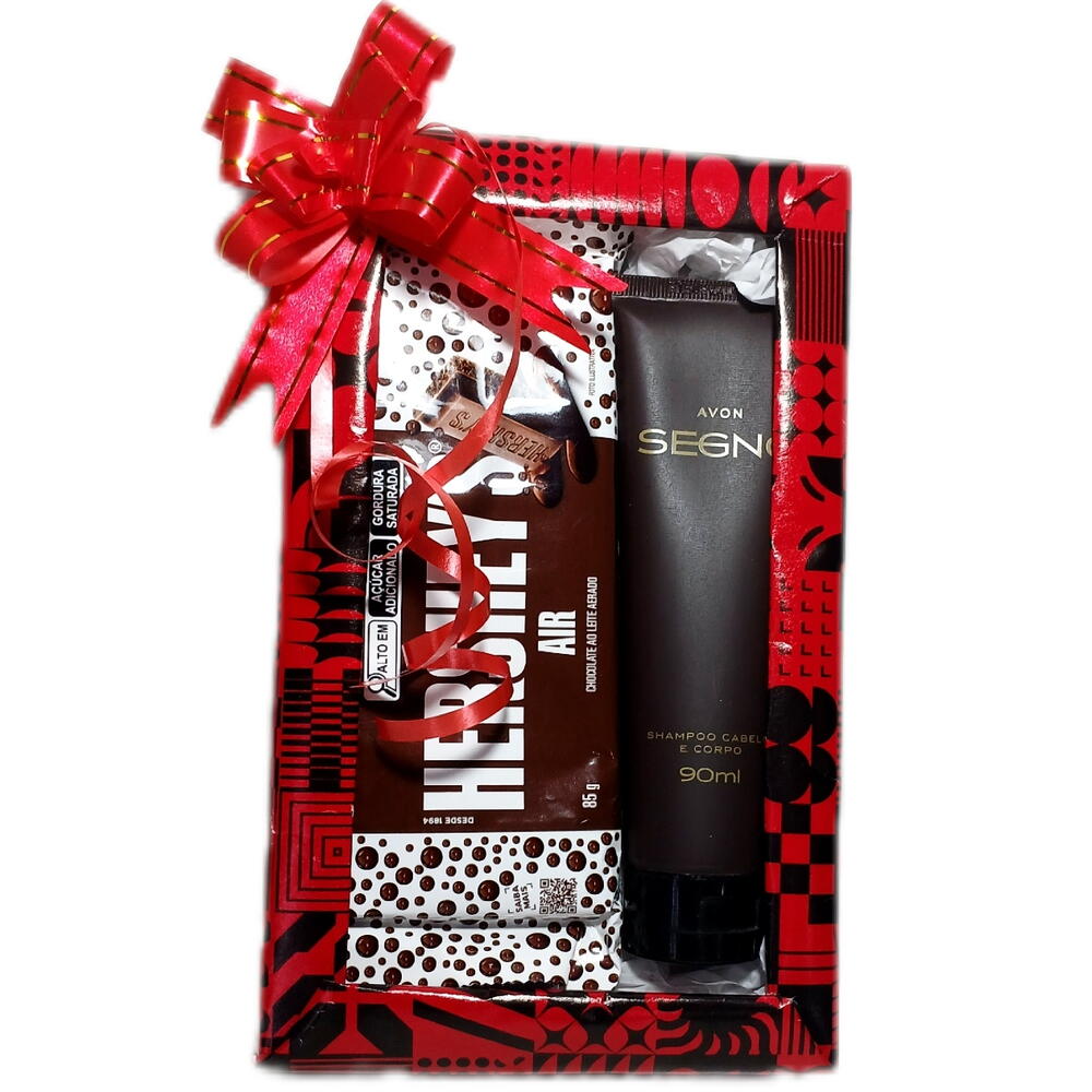 Um Mimo para abrir aquele sorrisão. *Shampoo Cabelo e Corpo Segno 90ml Avon *Barra Hersheys 85g. Embalado com celofane transparente e laço. Garanta o seu!