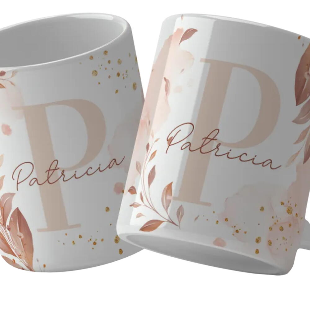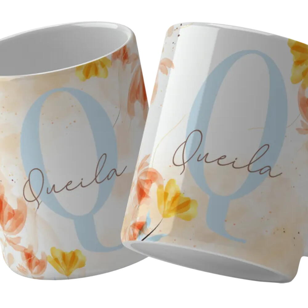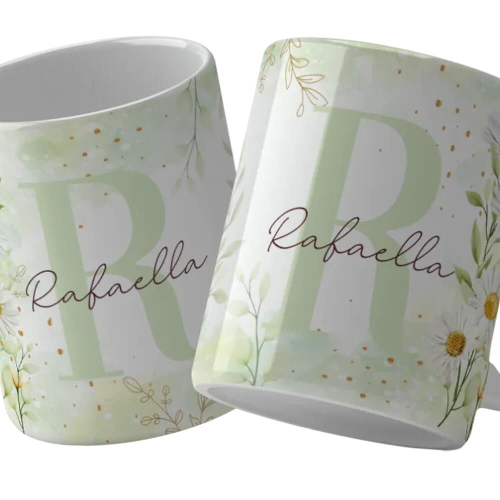 Caneca Personalizada Alfabeto Floral com Letra e Nome 2