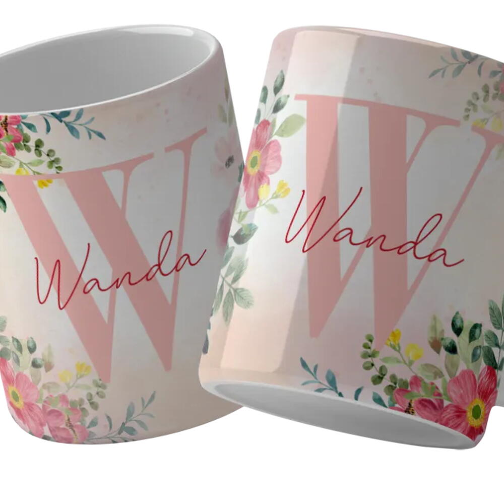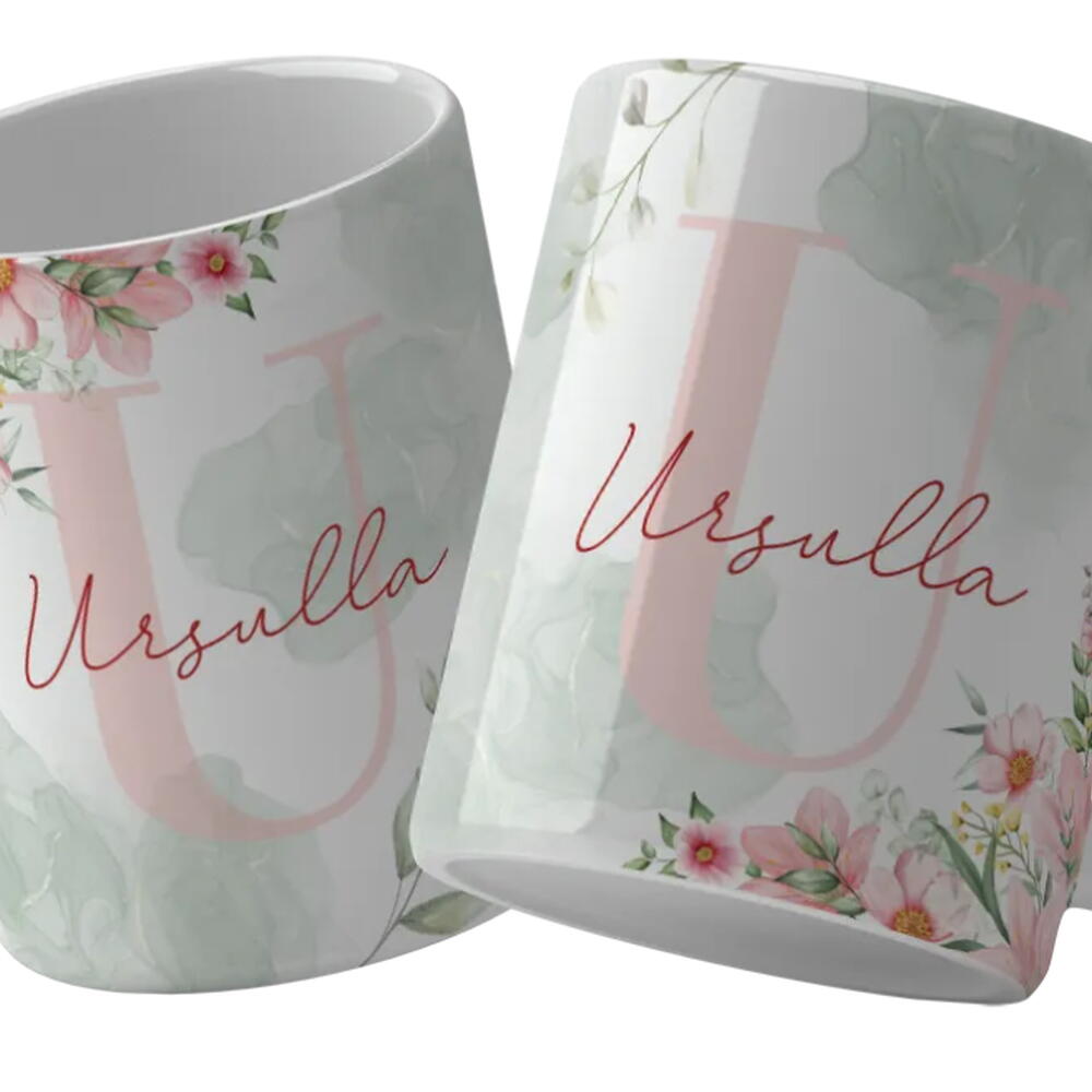Caneca Personalizada Alfabeto Floral com Letra e Nome 3