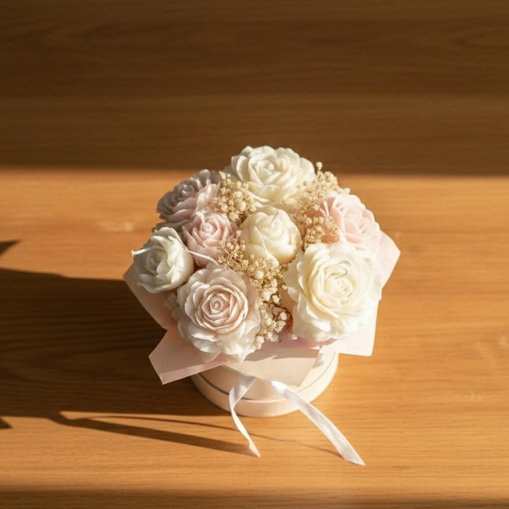 O Box Floral em Velas Aromáticas reúne beleza, charme e perfume em uma composição delicada e sofisticada. Cada vela, cuidadosamente moldada em formato floral, exala uma fragrância suave que transforma o ambiente, criando uma atmosfera acolhedora e harmoniosa. A caixa decorativa valoriza ainda mais o conjunto, tornando-o um presente perfeito para ocasiões especiais ou para quem deseja adicionar um toque aromático e elegante ao lar. Uma peça encantadora que combina decoração, aroma e delicadeza em um só produto.