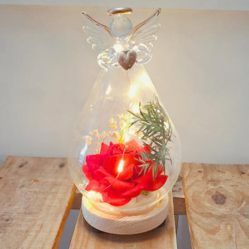 Cupula anjo com rosa e led 15cm