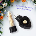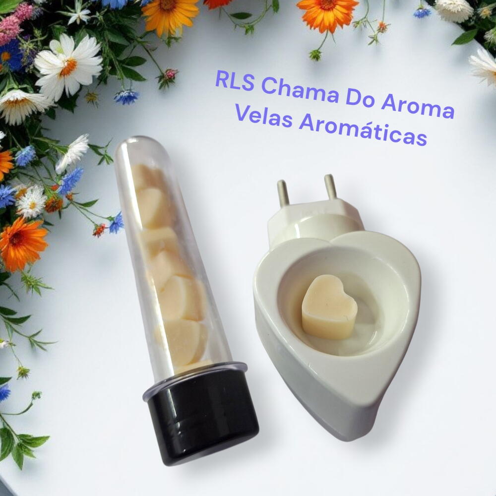 Difusor eletrico 110/220v em formato de coração com 20 grs de mini pastilhas aromáticas em vários formatos feitas em cera vegetal.