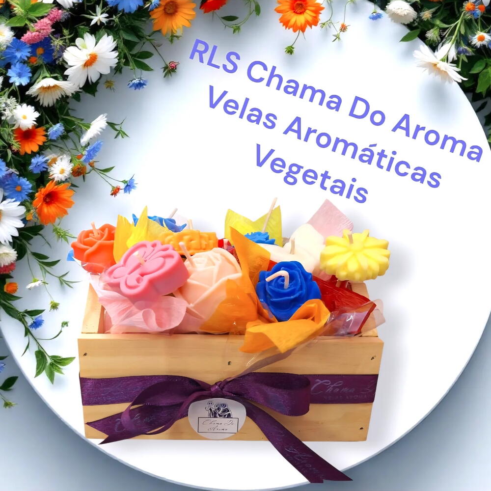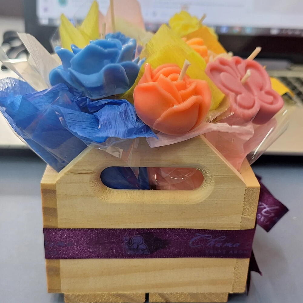 Mini Caixote de Flores Vela de Cera Aromatica Vegetal
