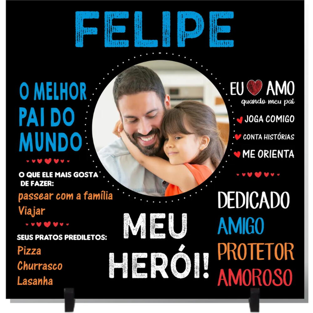 Azulejo personalizado com foto e mensagem - as características podem ser personalizadas Dimensões: 20 x 20 cm Conteúdo da Embalagem: 01 azulejo 20x20 02 suportes de sustentação