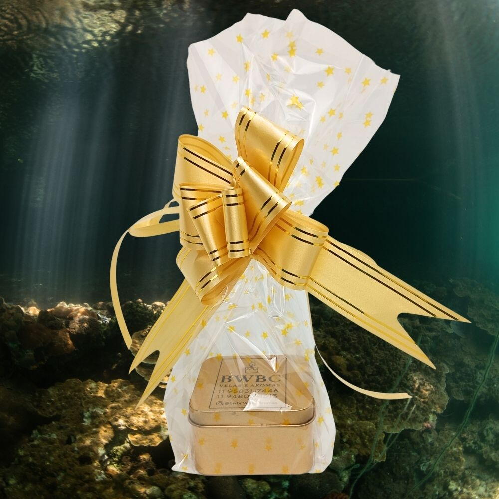 Cera de coco Laço dourado Involucro plastico transparente Pavio de algodao Aroma premium importada Lata aluminio