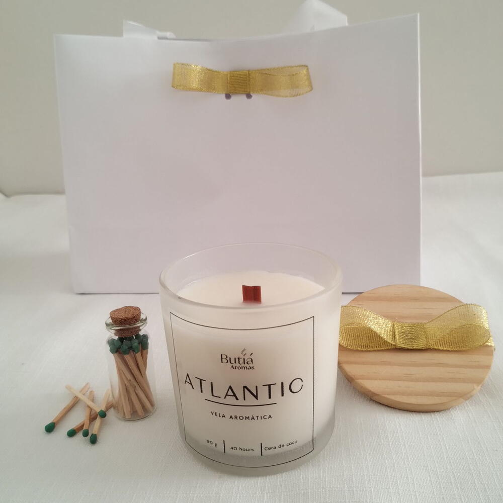 Kit Vela Aromática Atlantic 190g – Frescor do mar com toque das flores e elegância natural 🌸 ✨ Conteúdo do kit: 🕯️ Vela Aromática Atlantic (190g) – Feita com cera 100% vegetal e perfume de alta performance. 🔥 Mini frasco com palitos de fósforo – Detalhe elegante e funcional. 💙 1 saquinho com wax melts – Ideal para aromatizar pequenos espaços. Sinta a leveza da brisa do mar em harmonia com o perfume suave das flores. A fragrância Atlantic – Sol Mar combina notas aquáticas, florais e amadeiradas, criando uma atmosfera de frescor, serenidade e renovação — como um jardim à beira-mar iluminado pelo sol. 🌸 Fragrância: Notas cítricas de pêra, maçã e limão, que se unem a um coração floral de violeta, jasmim, lavanda e lírio-do-vale, finalizando com um fundo de âmbar, cedro e madeira aveludada. Evoca o frescor do mar e o perfume das flores, criando um ambiente leve, perfumado e acolhedor. 💫 Curiosidade: O aroma Atlantic é inspirado na brisa oceânica e nas flores que florescem à beira-mar — perfeito para transmitir paz, energia positiva e bem-estar.