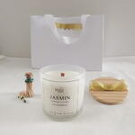 Vela Aromática Jasmim Branco 190g – Elegância floral e serenidade em cada detalhe 🌸 🕯️ Vela Aromática Jasmim Branco (190g) – Cera 100% vegetal e perfume floral refinado. 🔥 Mini frasco com palitos de fósforo – Um toque funcional e charmoso para acender sua vela. 🎁 1 sacola de presente – Embalagem linda e pronta para encantar. Sinta o perfume envolvente das flores brancas em perfeita harmonia com notas suaves e frescas. A fragrância Jasmim Branco combina o toque doce e delicado do jasmim com nuances verdes e florais, criando uma atmosfera de calma, sofisticação e pureza — como um jardim florido em plena primavera. 🌸 Fragrância: Pertencente à família Floral abre com notas de Maçã e Notas Verdes seguidos com coração revela a nota Rosa, Frésia, Jasmim e Lírio do Vale finalizando com Musk e Ambergris. Um aroma sofisticado e feminino, que lembra o frescor de um buquê recém-colhido — delicado, elegante e reconfortante. 💫 Curiosidade: O jasmim é símbolo de pureza e sensualidade, amplamente usado em perfumes de luxo e rituais de beleza. 💐 Perfeita para presentear quem ama fragrâncias florais e ambientes perfumados com elegância. 📦 A pronta entrega