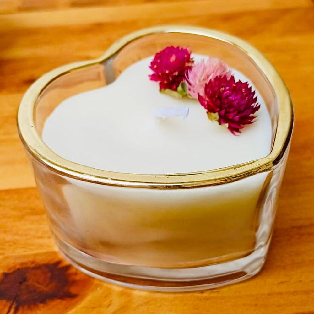 vela artesanal em vidro de coração é perfeita para quem ama produtos cheios de charme. Seu aroma de pitanga negra traz uma fragrância doce e frutada, que deixa o ambiente acolhedor e perfumado por horas. Uma opção encantadora para decorar, relaxar ou presentear.