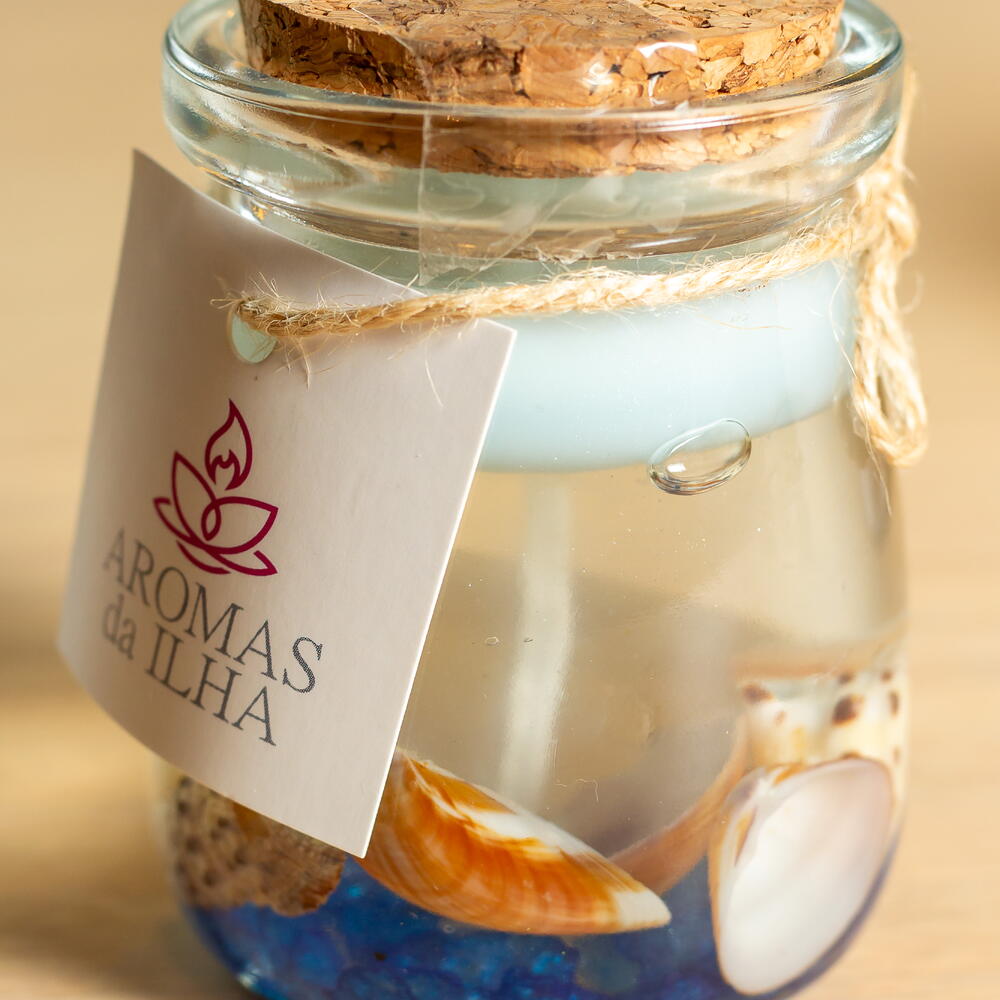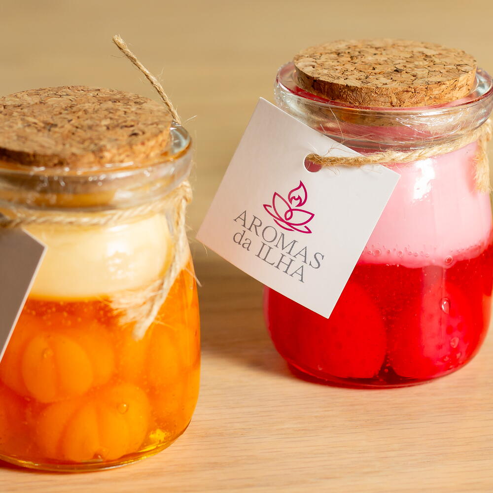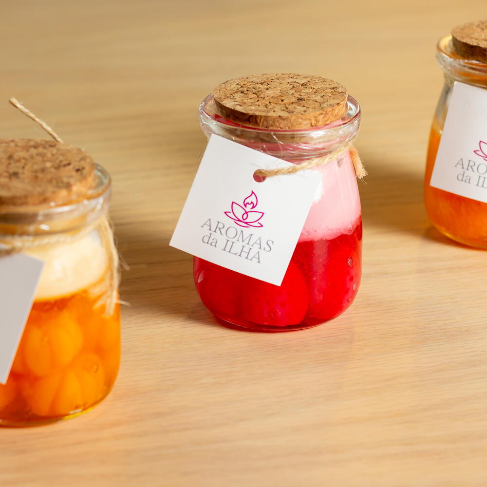 Vela artesanal feita com uma combinação de parafina gel e cera vegetal, unindo transparência e textura em uma peça encantadora. Decorada com morangos, pitangas, gomos de bergamota, conchas ou corações feitos à mão, ela perfuma e embeleza o ambiente, transmitindo aconchego e delicadeza em cada detalhe.