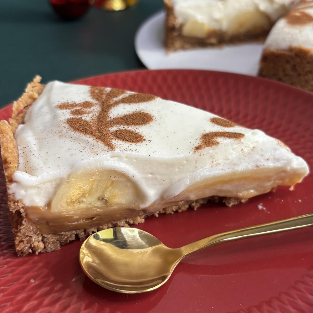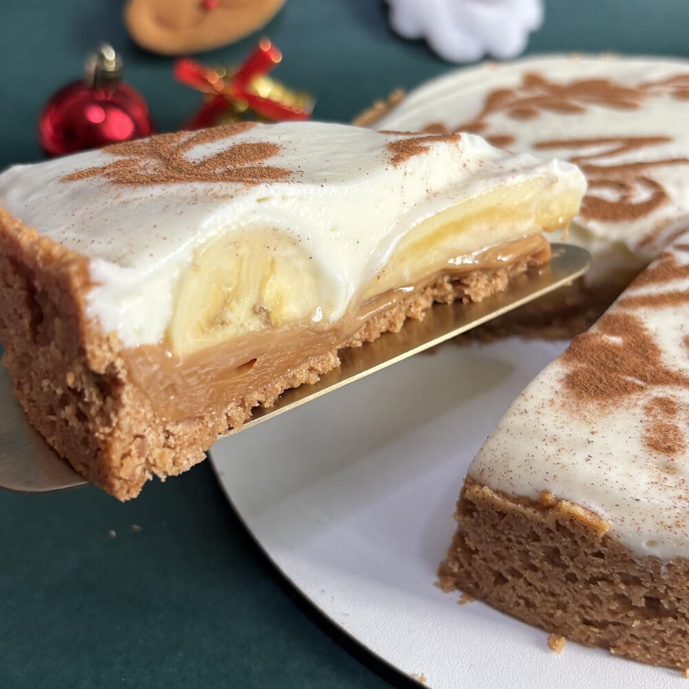 Banoffee com base crocante, doce de leite cremoso, banana fresquinha e cobertura leve com toque de canela. Uma fatia que derrete na boca.