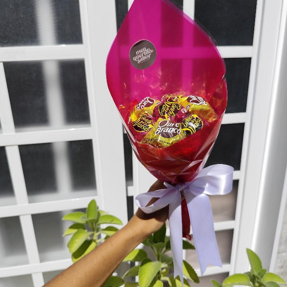 Buquê com 7 bombons Ouro Branco, Sonho de Valsa ou mesclado, montado em embalagem premium para presente. Informações importantes: • Embalagem pode variar conforme estoque • Todos os buquês acompanham proteção transparente - Envie os dizeres do bilhete no chat (bilhete impresso com envelope branco) Presente ideal para Valentine’s Day, Dia dos Namorados, Dia das Mães, Dia Internacional da Mulher, aniversários, pedidos de desculpas e datas especiais. Uma opção criativa para quem deseja sair do tradicional de floricultura, flores e cestas de café da manhã ou cesta de chocolate.