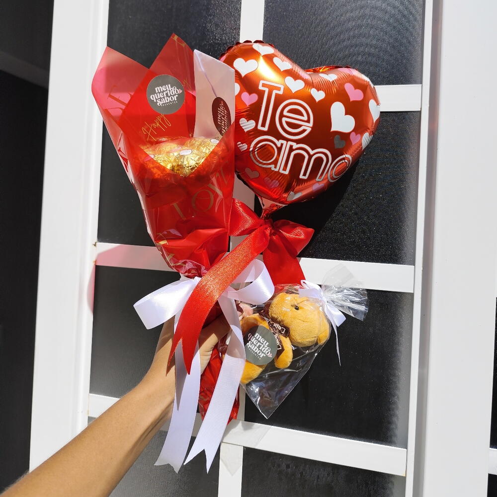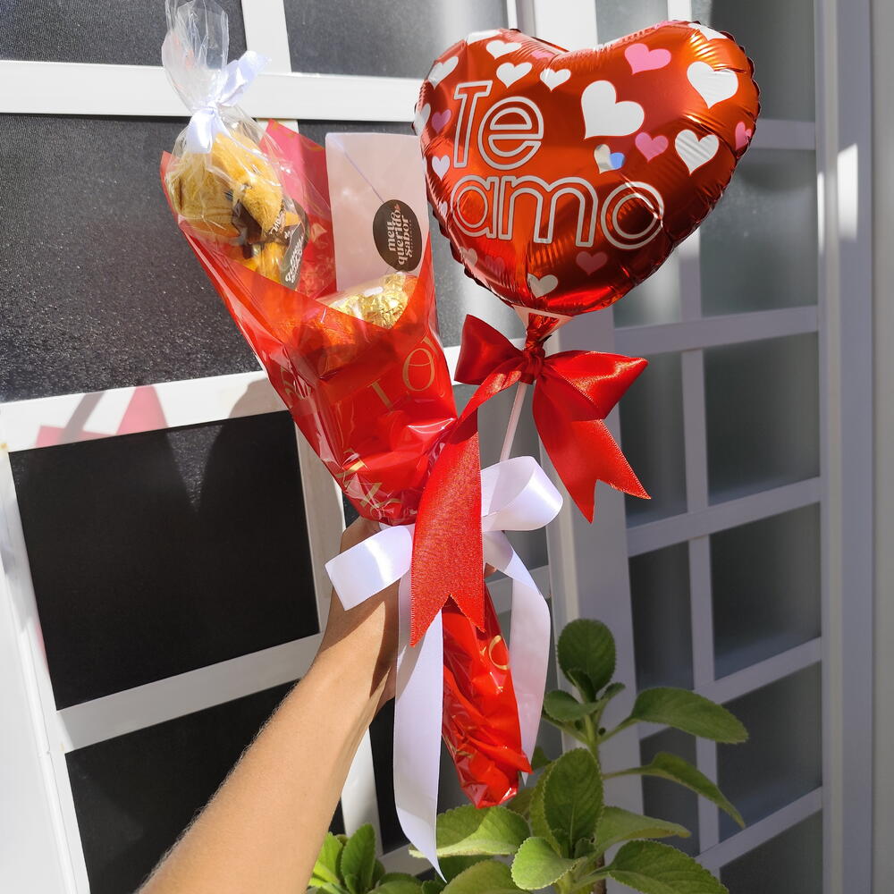 Buquê Ferrero Rocher + Pelucia, Balão coração e Bilhete