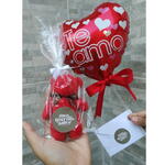 Buquê de chocolate com morangos, rosa e Ferrero Rocher Graciosa + Pelucia, Balão coração e Bilhete