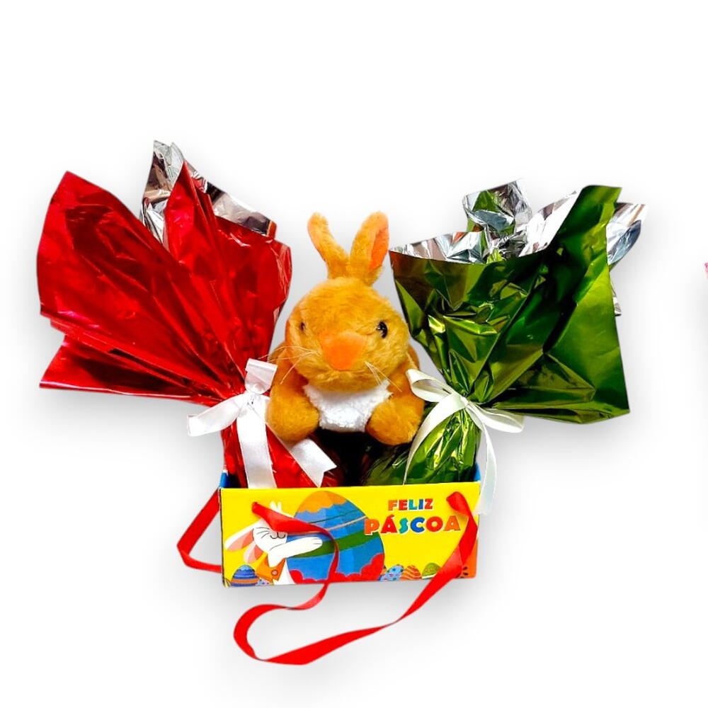 1 Delicioso ovo 250g ao leite artesanal feito com chocolate nobre (garoto) 1 Delicioso ovo 250g chocolate branco artesanal feito com chocolate nobre (garoto) 1 Linda pelúcia de coelho 1 caixa de presente *Embalado para presente