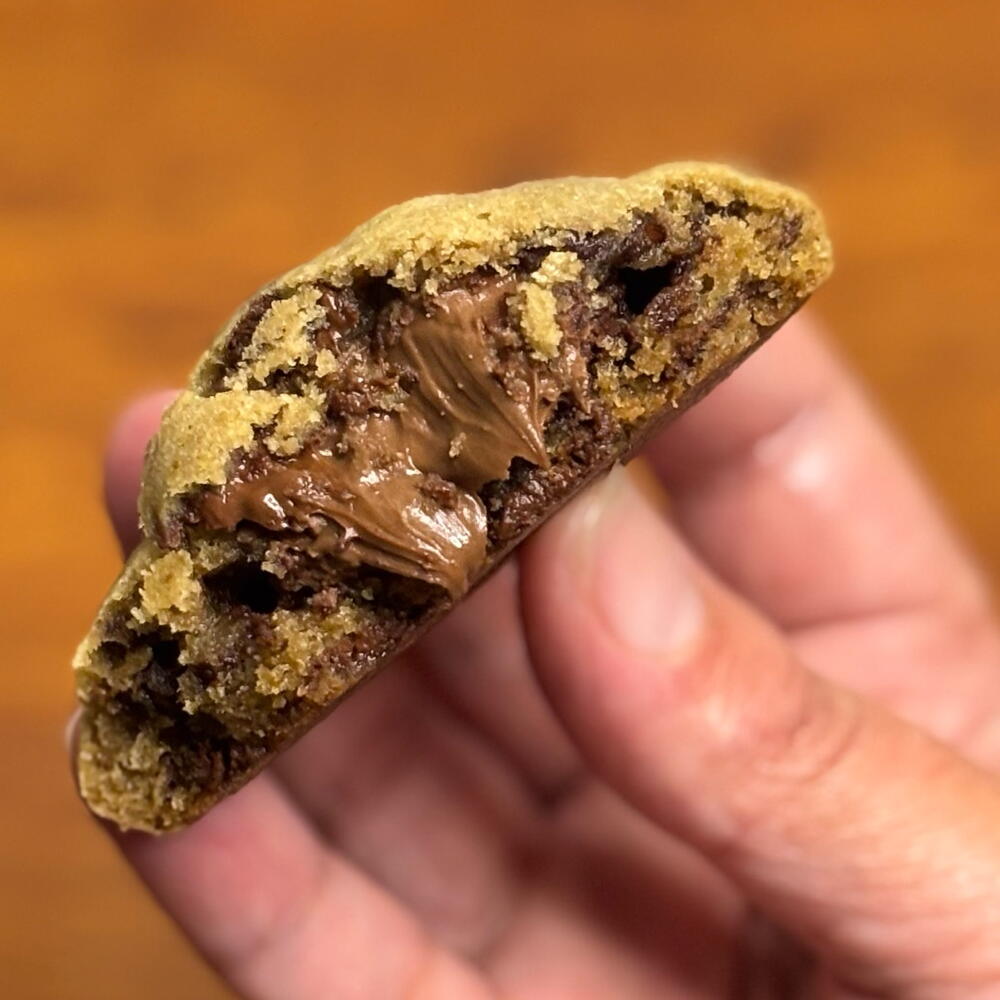 Massa tradicional com gotas de chocolate nobre e recheio de nutella, macio por dentro e crocante por fora! Impossível comer somente um.