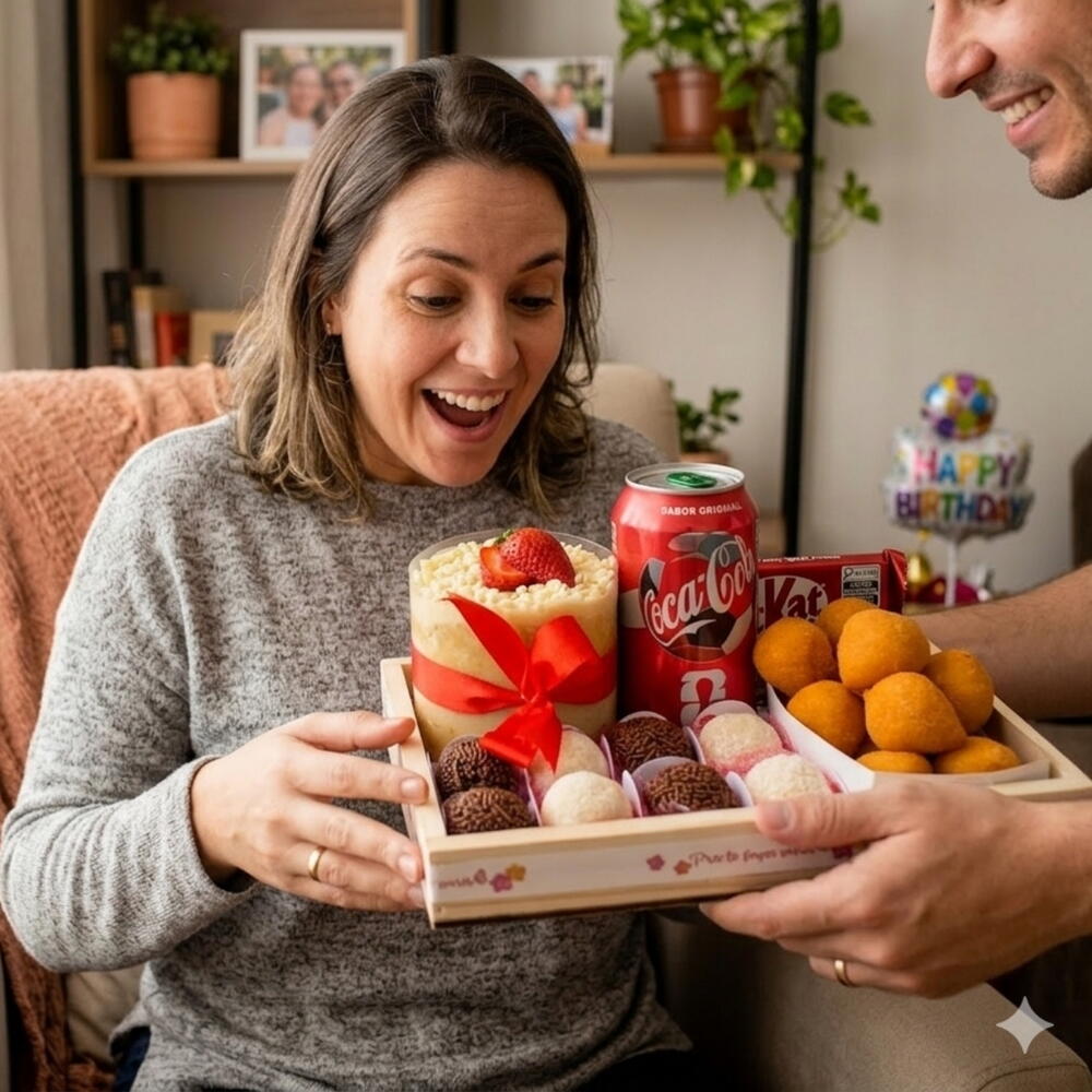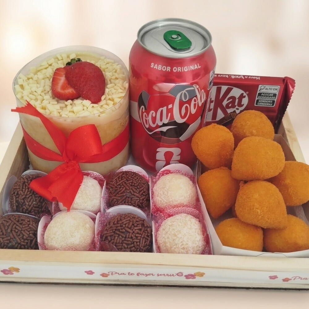 Bolo Bento Cake 15 Salgados 8 Docinhos Gormet 1 kit Kat 1 Coca Cola