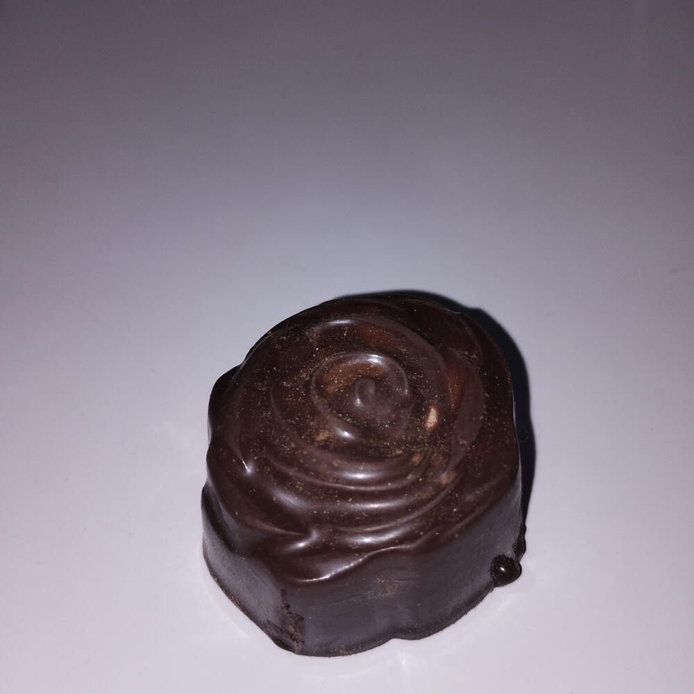 Cápsulas individuais em formato de flor no chocolate meio amargo. Para lembrancinhas.