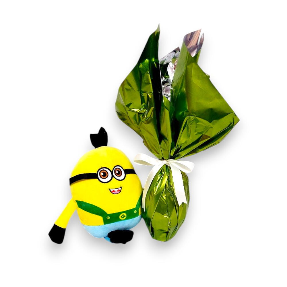 1 Delicioso ovo 250g ao leite artesanal feito com chocolate nobre (garoto) 1 Linda Pelúcia Minions