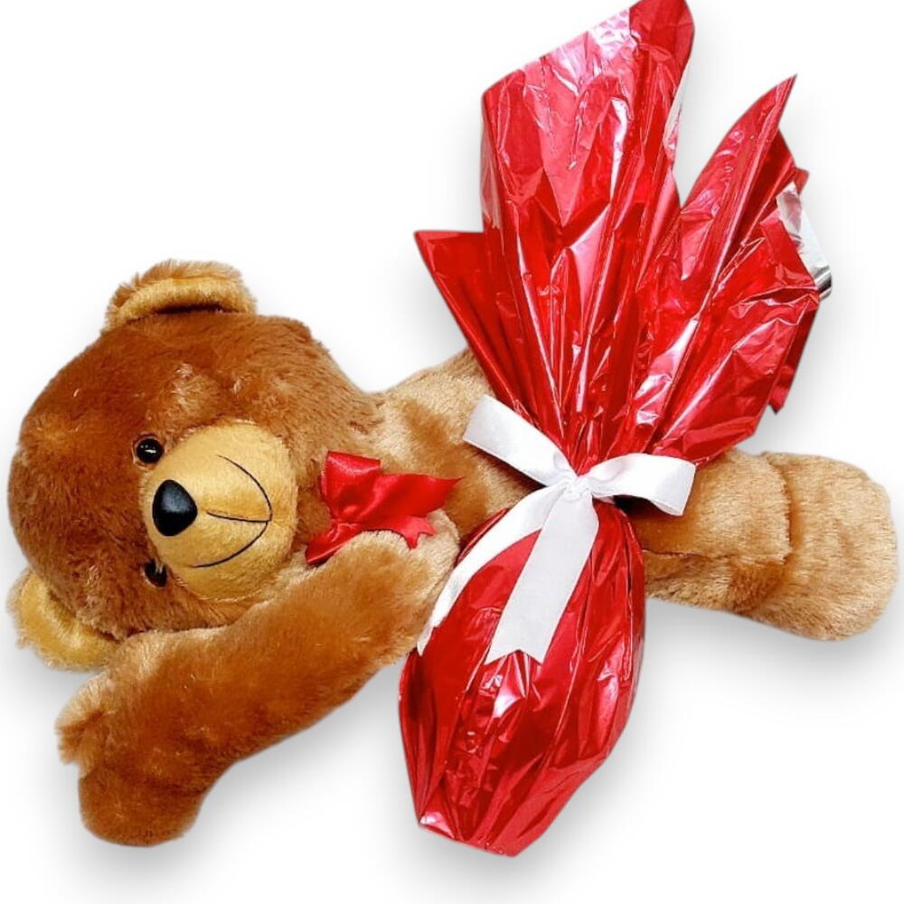 Linda opção de presente paa tornar esse Dia ainda mais doce. 1 Delicioso ovo 250g ao leite artesanal feito com chocolate nobre (garoto) 1 Linda pelúcia de ursinho deitado *Embalado para presente