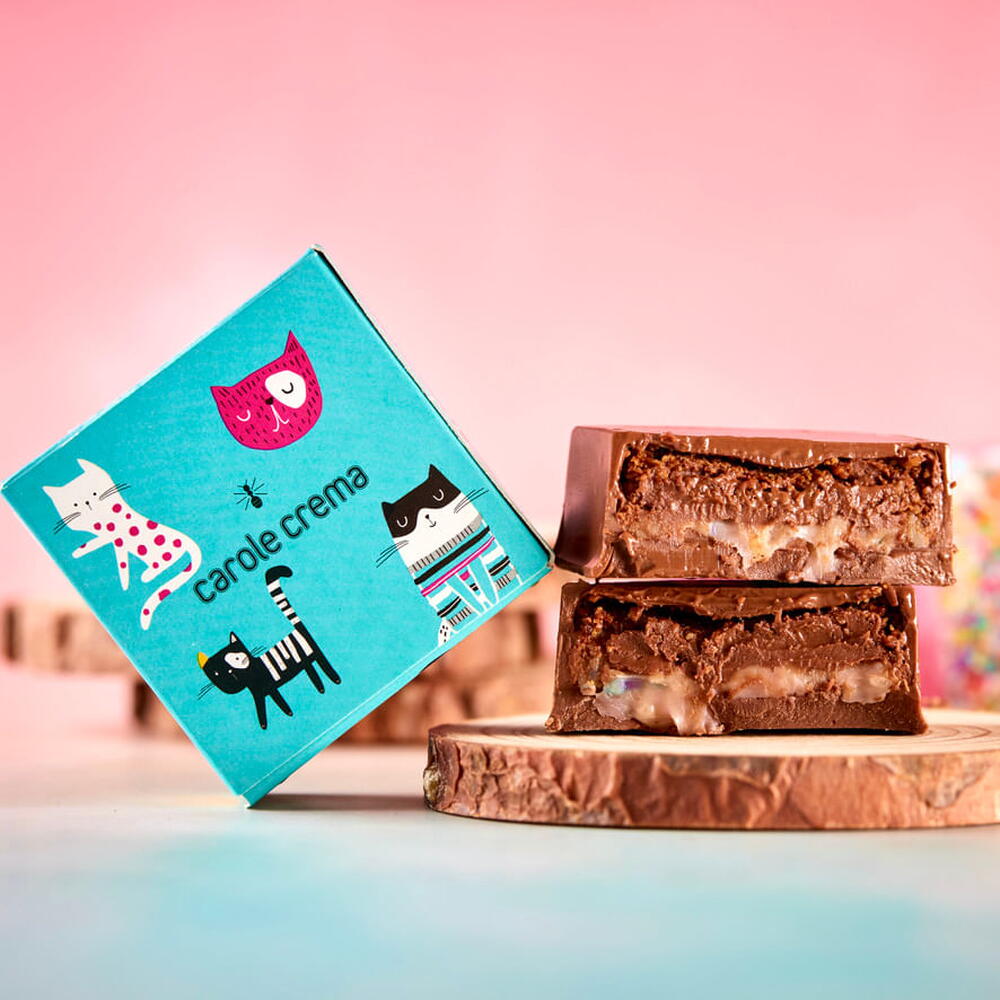 Quadrado de chocolate ao leite, recheado de Nutella e leite condensado com miçangas coloridas! Peso aprox: aprox