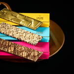 Trio de Barras de Chocolate Carole Crema. O trio é formado por 1 barra de chocolate e paçoca 120g; 1 barra de chocolate, recheado de caramelo e cobertas por lascas de amêndoas 120g; 1 barra de chocolate cravejada de pepitas de honeycomb 120g; Peso Total: 360g Peso aprox: aprox