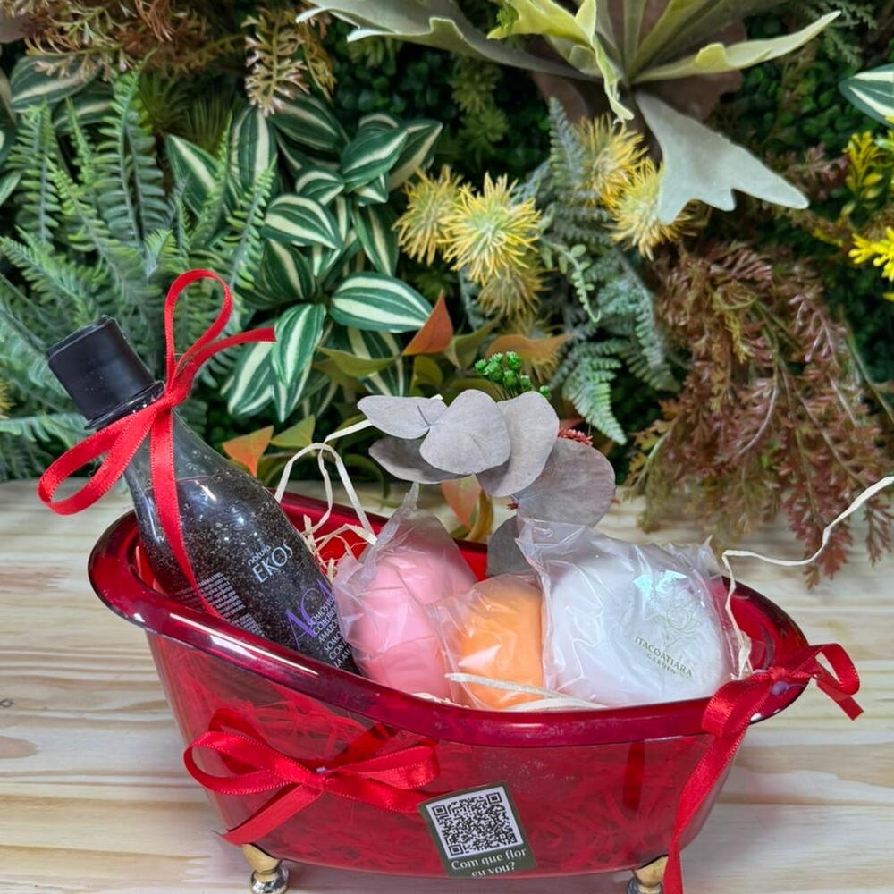 Desfrute de um momento de indulgência pessoal com a nossa luxuosa cesta de beleza. Este conjunto elegantemente embalado contém três cremosos sabonetes da Natura, conhecidos por sua hidratação intensa, e um sabonete esfoliante Natura para uma experiência de spa em casa. Transforme o seu ritual de banho diário em um deleite especial com este presente ideal para auto-cuidado.
