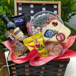 Este presente sofisticado contém sabores deliciosos para quem gosta de apreciar o melhor da culinária. Comece saboreando um suculento damasco acompanhado de um cremoso queijo brie. Para quem prefere petiscos salgados, incluímos uma mini tábua de frios com salamitos Sadia e um saboroso queijo gorgonzola. E para despertar os sentidos, oferecemos uma variedade de amendoins em uma petisqueira. Quando o paladar pedir algo mais doce, experimente a barra de chocolate suave e os irresistíveis bombons Ferrero Rocher. Acompanhe tudo isso com um vinho chileno de qualidade, servido na elegante taça de vinho de vidro incluída. E para completar, uma refrescante água de prata. Todo o conjunto é cuidadosamente acomodado em um charmoso baú de vime. Escolha perfeita para presentear alguém especial!