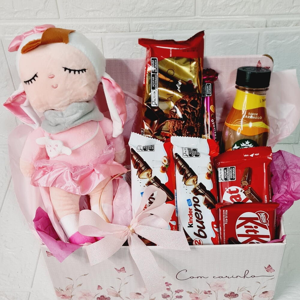 Esta Cesta Infantil é pura diversão e sabor! Repleta de guloseimas amadas pelas crianças, ela contém uma unidade do delicioso Kinder Bueno, do crocante Cookies, do irresistível KitKat e da incrível Barrinha Lacta. Além disso, ela vem com um achocolatado Starbucks de 280 ml para agradar o paladar. E para tornar a surpresa ainda mais especial, a cesta contém uma linda boneca de 24 cm. Ideal para presentear em qualquer ocasião!