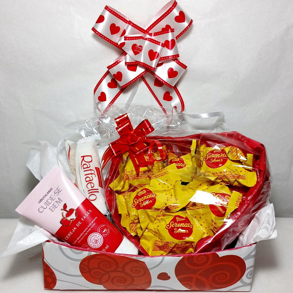 Olha que combinação perfeita para presentear: Boticário, Raffaello e Serenata de Amor. E a caixa decorada? Contém: *Coração c/6 Bombons Serenata de Amor *Trio Raffaello *Hidratante Corporal Boticário Cereja 50ml. Embalado com celofane transparente e laço. Garanta o seu!