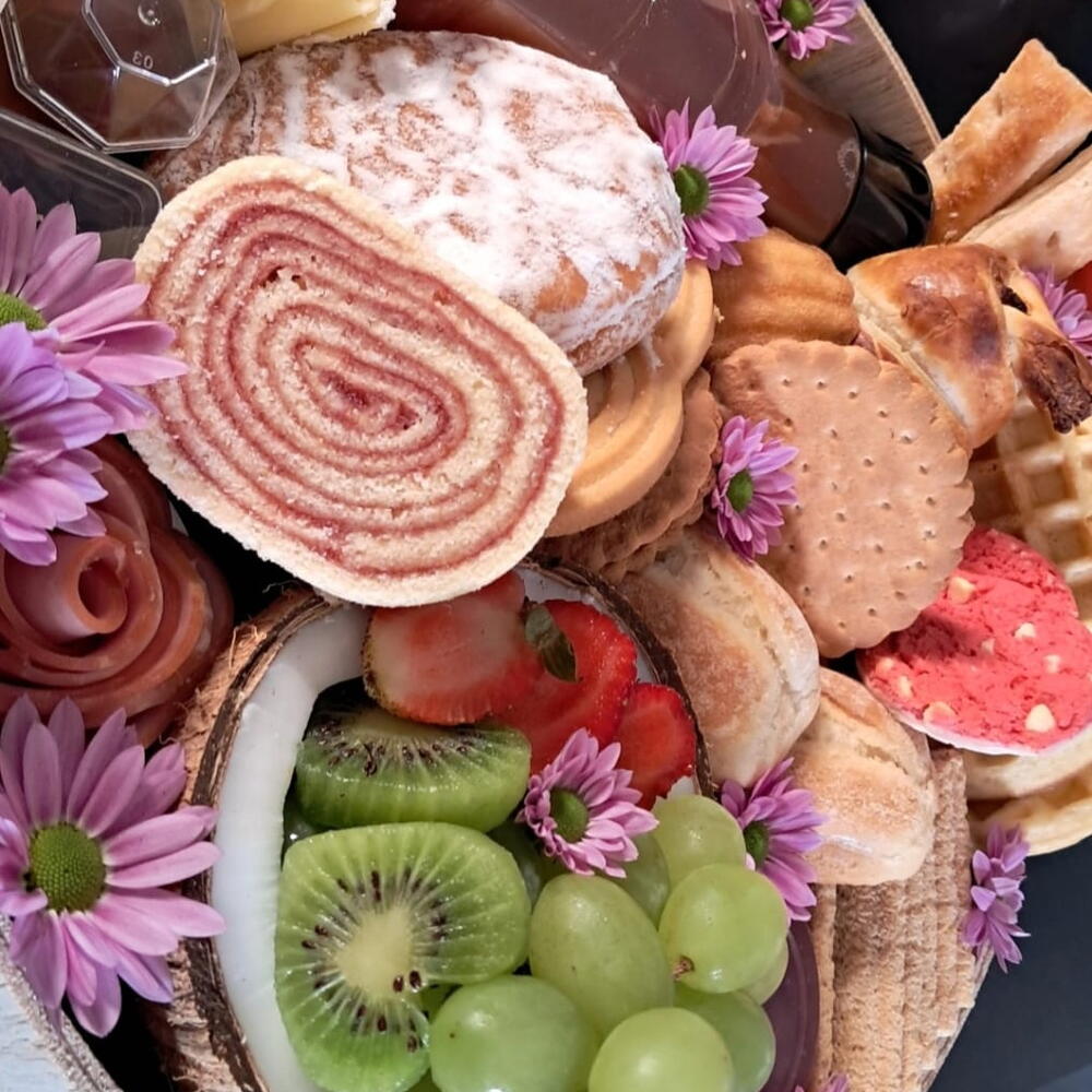 croissant - 1 pcs iogurte - 1 pcs suco - 500 ml torrada - 6 pcs mel - 50 ml waffles - 2 pcs uvas - 75 g brownie - 1 pcs donuts - 1 pcs biscoito folhado - 2 pcs biscoito decorado - 1 pcs presunto fatiado - 75 g madeleine - 1 pcs bisnaguinha - 2 pcs biscoito com cobertura de chocolate - 2 pcs mini geleia artesanal - 50 ml drip coffee (café individual) - 1 pcs queijo fatiado - 75 g biscoito de baunilha - 2 pcs biscoito de leite com recheio - 2 pcs