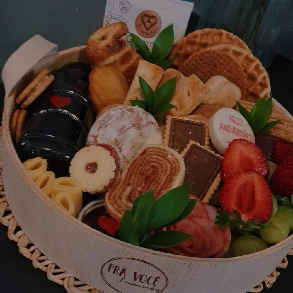 A Box Aconchego é um verdadeiro convite para saborear o momento com calma e afeto. Apresentada em bandeja de madeira (ou Tramontina), embalada em celofane com laço e acompanhada de cartão para mensagem personalizada, ela é ideal para 2 pessoas e combina uma seleção especial de itens doces e salgados para um café da manhã completo e encantador