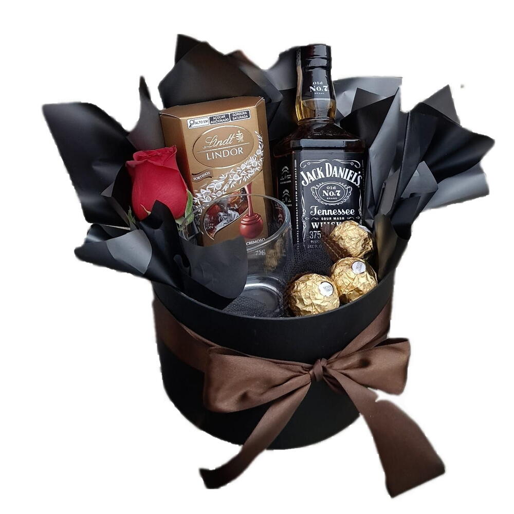 Este kit de presente é a opção perfeita para surpreender alguém especial. Contém um sofisticado Whisky Jack Daniels 375ml para apreciar durante um momento relaxante, de Bombom Lindt 75g e 1 Blister Ferrero com 3 unidades para adoçar o paladar, elegante Copo, 1 delicada rosa para expressar seus sentimentos e balão especial para o Dia dos Namorados para complementar sua surpresa com um toque divertido. Este conjunto completo é uma combinação perfeita de estilo, sofisticação e carinho.