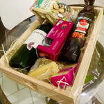 Apresentamos um elegante presente com bebida para qualquer ocasião! Este elegante conjunto vem completo com duas variedades de queijos finos, um salame tipo italiano saboroso, uma garrafa de vinho selecionada para aperfeiçoar os sabores. Um pacote de aperitivo, juntamente com três unidades de marshmallows deliciosos, compõem este presente, tudo apresentado numa bandeja sofisticada com palha decorativa. O conjunto vem apropriadamente embalado em celofane com um laço para encanto adicional.