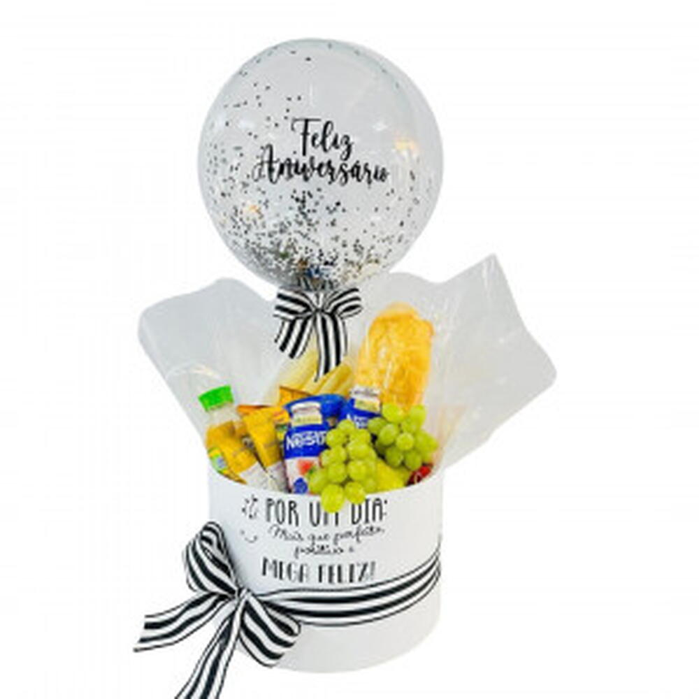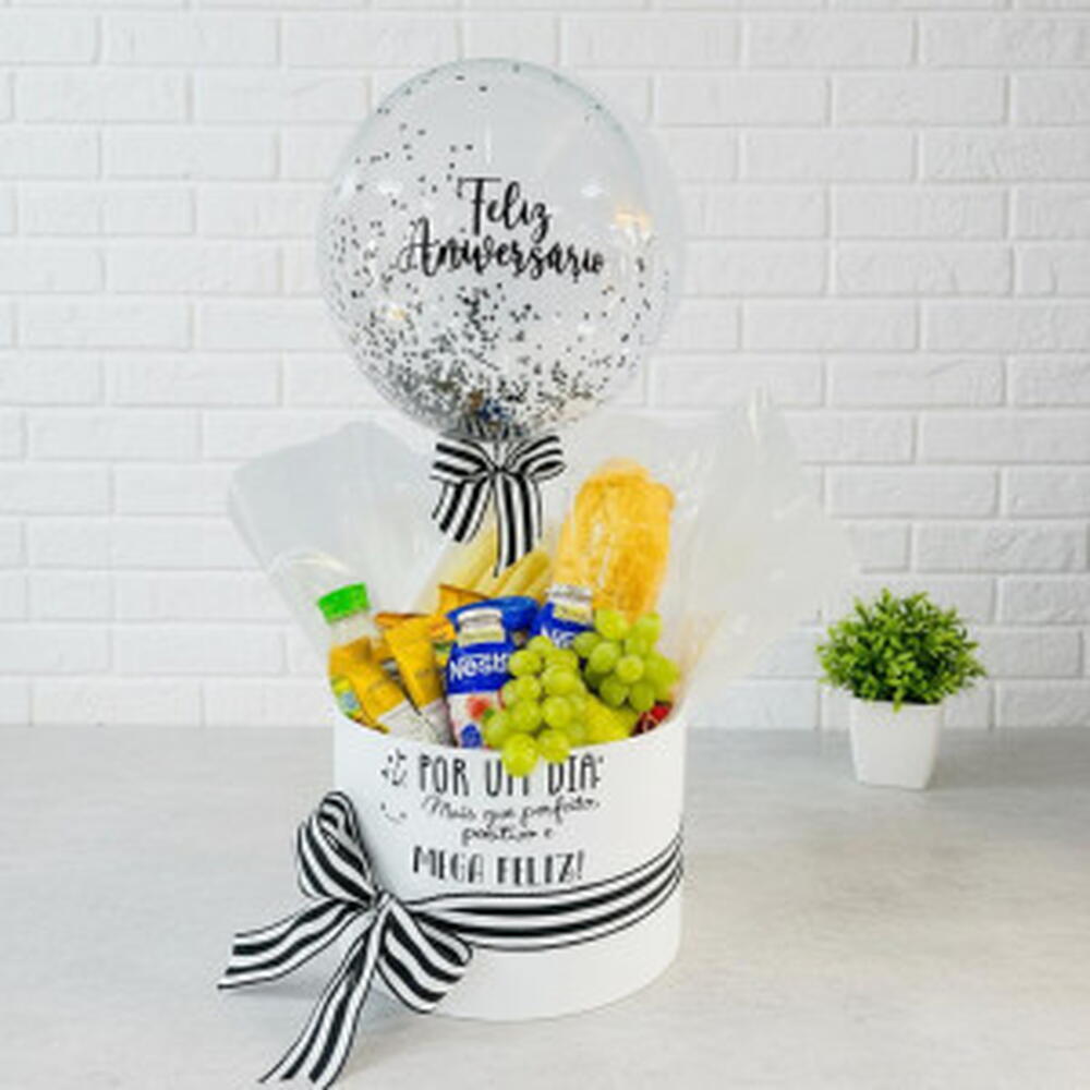 Esta Cesta de Café da Manhã lindamente apresentada vem repleta de delícias ideais para começar bem o dia. A cesta inclui um iogurte saudável e saboroso, um queijo polenguinho cremoso, dois sachês de café solúvel para preparar uma bebida revitalizante, um requijão delicioso e duas unidades de torradas crocantes da marca Bauducco. Também contém três tipos de pães frescos, um sachê de açúcar, duas unidades de deliciosas bolachinhas Bauducco, uma unidade de achocolatado para um toque adocicado e duas frutas da época fornecendo uma dose natural de vitaminas. Completa a cesta um suco de 200ml, fatias frias de muçarela e presunto e a própria cesta de madeira resistente, perfeita para viagens. É o presente perfeito para surpreender alguém especial com um café da manhã luxuoso e completo. Ref.: BX-1074 Informações sobre Entrega --------------------------------------- * Entregamos para São Paulo, grande São Paulo e ABCD. * De segunda à sexta, entregamos em até 3 horas ou no mesmo dia, para pedidos feitos até às 15h00. * Sábados, entregamos no mesmo dia se o pedido for até às 10h00.