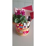 queijo brie ile de france - 1 pcs queijo gouda - 1 pcs caixa de madeira personalizada - 1 pcs um vaso de flor (modelo conforme estoque) - 1 pcs vinho cabernert suavignon mini - 1 pcs geleia artesanal 80gr - 1 pcs ferreiro rocher na forminha de flor - 1 pcs taça de vinho – para brindar - 1 pcs
