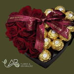 Deixe-se encantar com esta linda Box de Flores, cuidadosamente montada para expressar seus sentimentos mais puros. Composta por 10 rosas luxuosas e vívidas, que exalam delicadeza e beleza incomparáveis, nossa box também possui 10 unidades do irresistível Ferrero Rocher, o chocolate italiano famoso no mundo todo pelo seu sabor sofisticado e único. Uma combinação perfeita para presentear alguém especial!