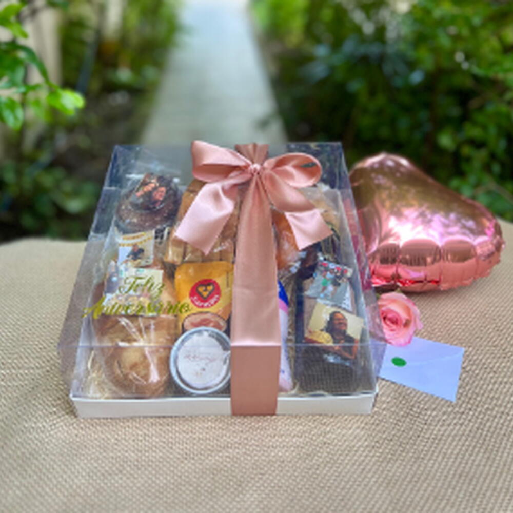 chocolate - 1 pcs croissant - 1 pcs biscoito amanteigado - 1 pcs torrada - 1 pcs capuccino - 1 pcs fotos - 6 pcs balão de coração - 1 pcs suco integral - 1 pcs fruta da estação - 1 pcs bolo no pote - 1 pcs logurte - 1 pcs bisnaga de geléia - 1 pcs