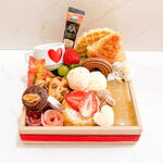 Desfrute de um delicioso e requintado Cesta de Café da Manhã, cuidadosamente embalado para proporcionar uma experiência matinal única. A cesta contém uma seleção de irresistíveis iguarias tais como; polenguinho cremoso, cookies crocantes, waffles aveludados, lombo canadense defumado, autêntico pão de queijo catupiry e um leve croissant de manteiga. Também acompanha uma delicada combinação de uvas e morangos frescos, um bolo de cenoura caseiro e um muffin de chocolate. Para complementar, inclui um suco natural de 180 ml, salame artesanal em formato de rosa, e um elegante sachê de cappuccino ou chocolate cremoso (conforme o estoque). Aprecie cada item em uma xícara de porcelana branca sofisticada. Tudo lindamente apresentado em uma bandeja decorada com um laço e embalado em elegante celofane com um laço adicional para um toque final perfeito.