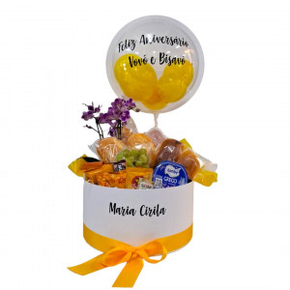 Surpreenda com o Box de Luxo Manhã Perfeita, kit com pães, frutas, iogurte, doces, flores e balão personalizado. Presente ideal para aniversários e datas especiais. Informações sobre Entrega --------------------------------------- * Entregamos para São Paulo, grande São Paulo e ABCD. * De segunda à sexta, entregamos em até 3 horas ou no mesmo dia, para pedidos feitos até às 15h00. * Sábados, entregamos no mesmo dia se o pedido for até às 10h00.