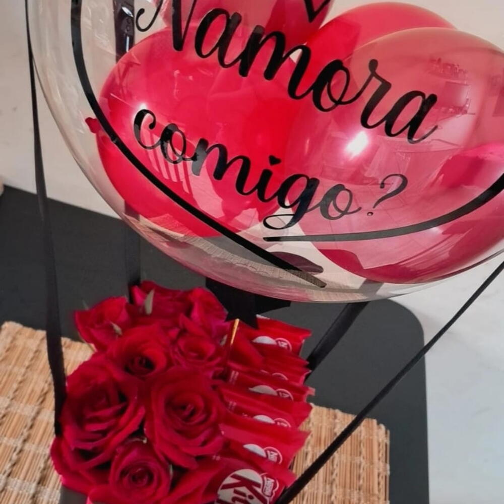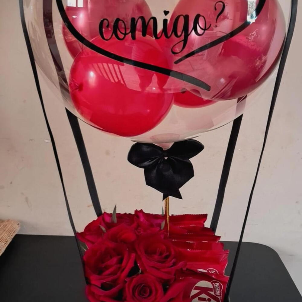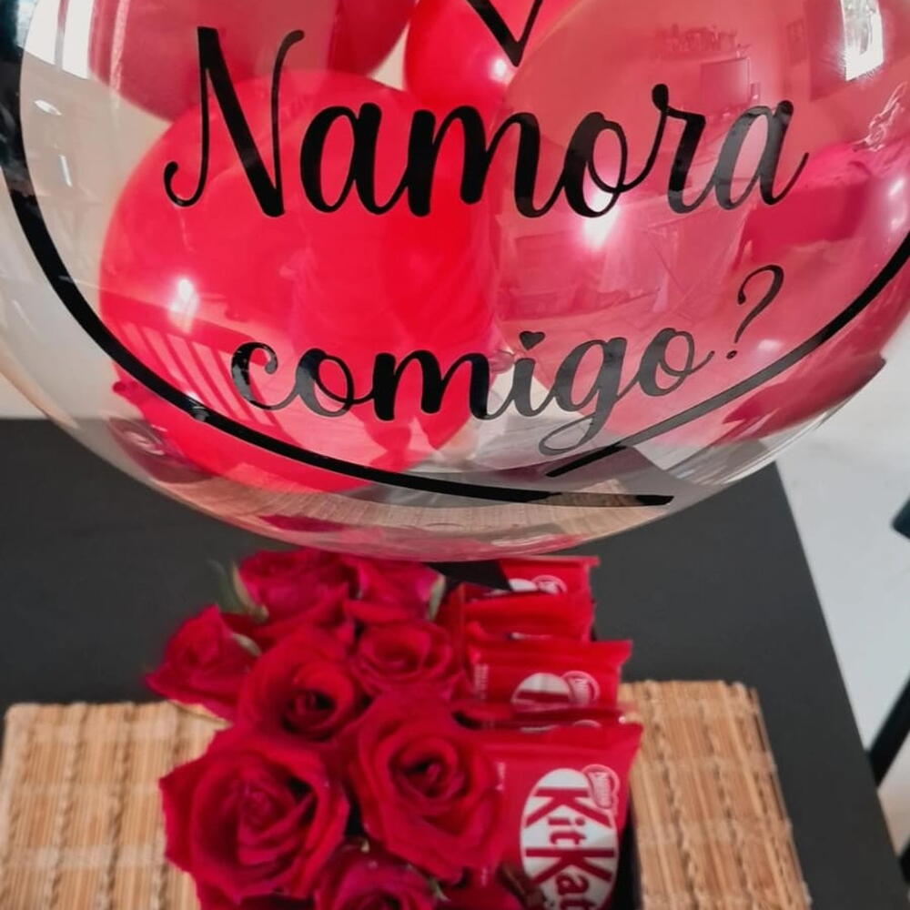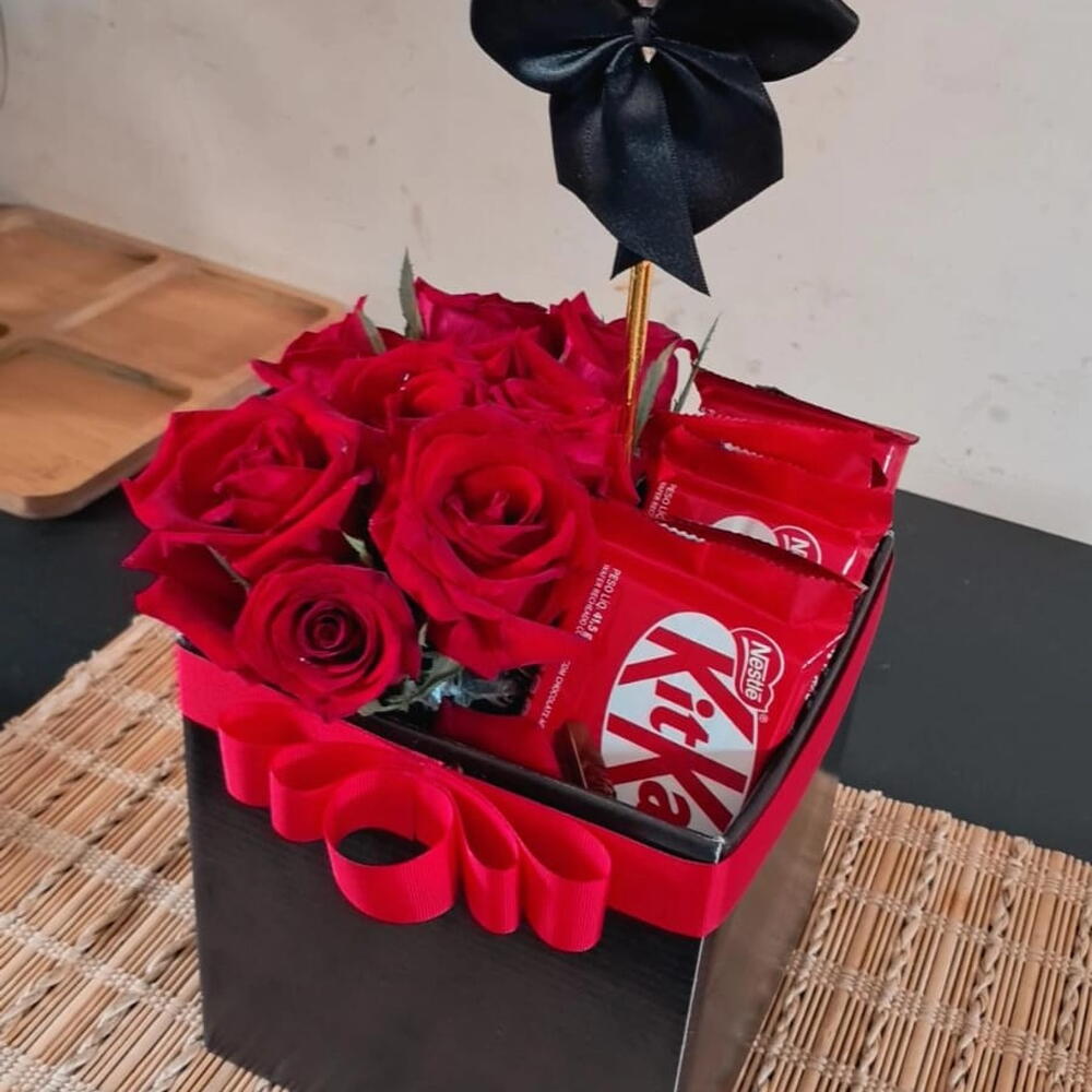 Um presente para transformar sentimentos em gestos. Apresentado em cachepô quadrado com 8 rosas , 8 chocolates KitKat e balão personalizado com a frase que você escolher. Perfeito para pedidos de namoro, surpresas românticas ou para simplesmente dizer o quanto alguém é especial.