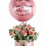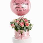 caixa cartonada redonda - 1 pcs flores naturais (verificar disponibilidade) - 12 pcs balão personalizado (consultar) - 1 pcs ferrero rocher 8uni - 1 pcs