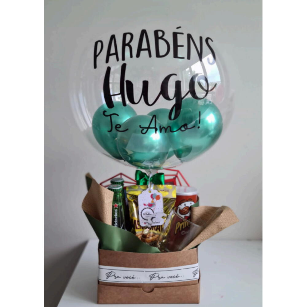 Este presente excepcional, ideal para quem aprecia uma boa cerveja, contém uma série de itens selecionados com cuidado. Inclui um balão personalizado para dar aquele toque especial, duas unidades da aclamada cerveja Heineken para celebrar momentos memoráveis, uma caneca de vidro para cerveja que acentua a experiência de beber, um pacote de Pringles para petiscar, um porta-retrato com foto para guardar memórias especiais e um pacote de amendoins para acompanhar a cerveja. Um regalo perfeito para ocasiões especiais.
